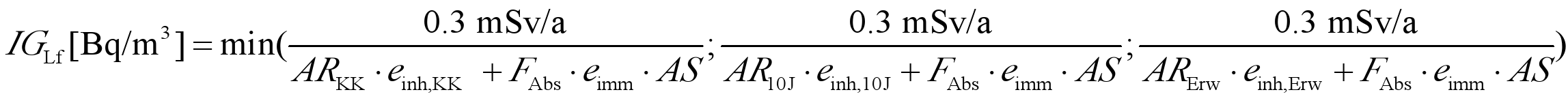 Für Inhalation gilt: CA [Bq/m3] = 0,02 Sv / (einh . 2400 m3/a).