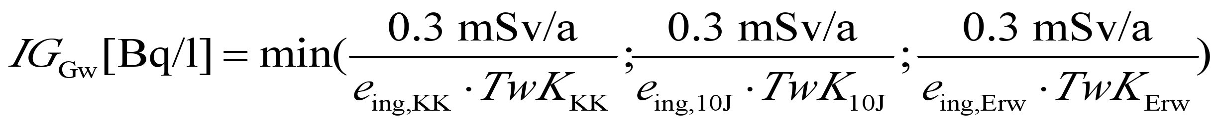 [11] Für Nuklidgemische von Uran (U-238/U-235/U-234+Töchter) sowie von Thorium (Th-232/Th-230/Th-228+Töchter) gilt die Bewilligungsgrenze des dominierenden Nuklids.